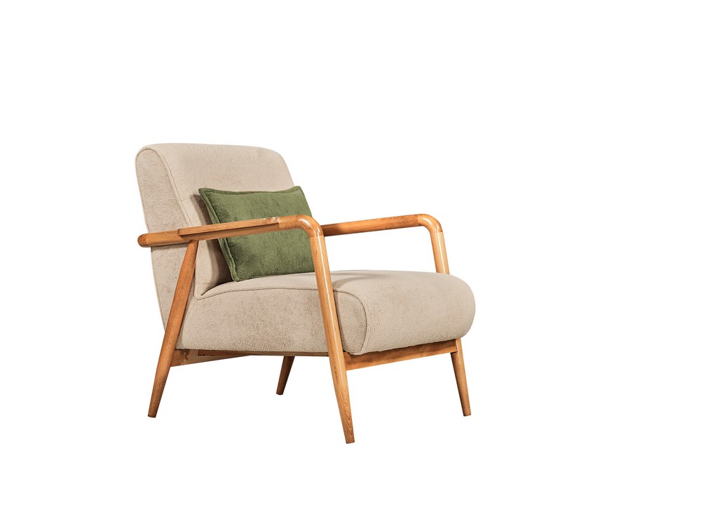 Arkaya doğru açılabilen mekanizmaya sahip, sağlam ahşap ayaklı bir tasarımdır. Konforlu oturum sunarken, mekanizması sayesinde kolayca geriye doğru yatırılarak dinlenme pozisyonuna geçilebilir. Şık ve doğal görünümlü ahşap ayakları ise ürüne hem estetik bir dokunuş hem de güçlü bir destek sağlar.