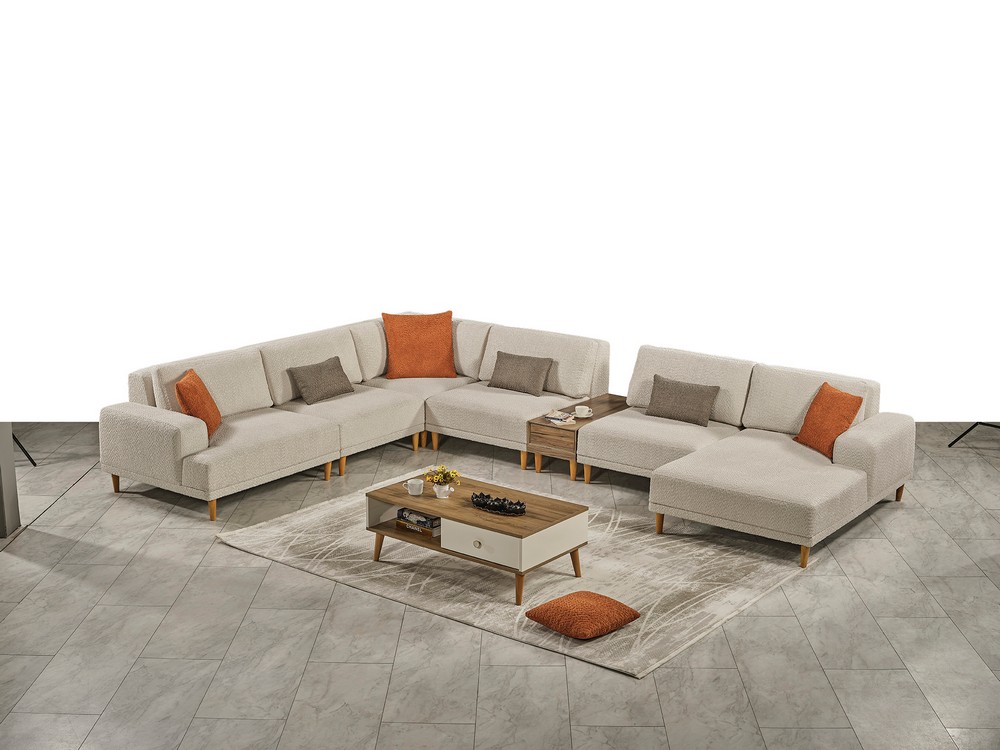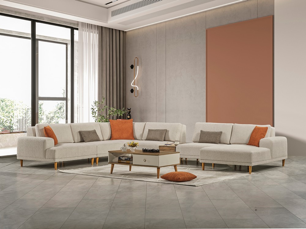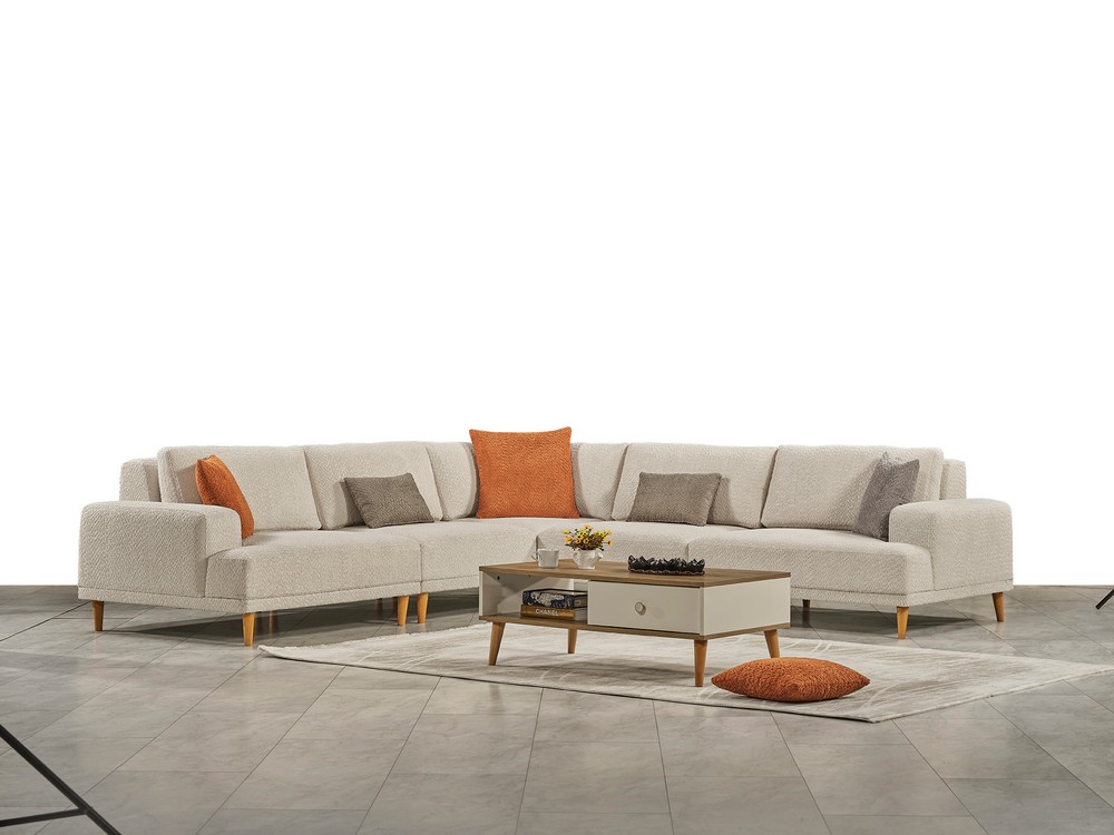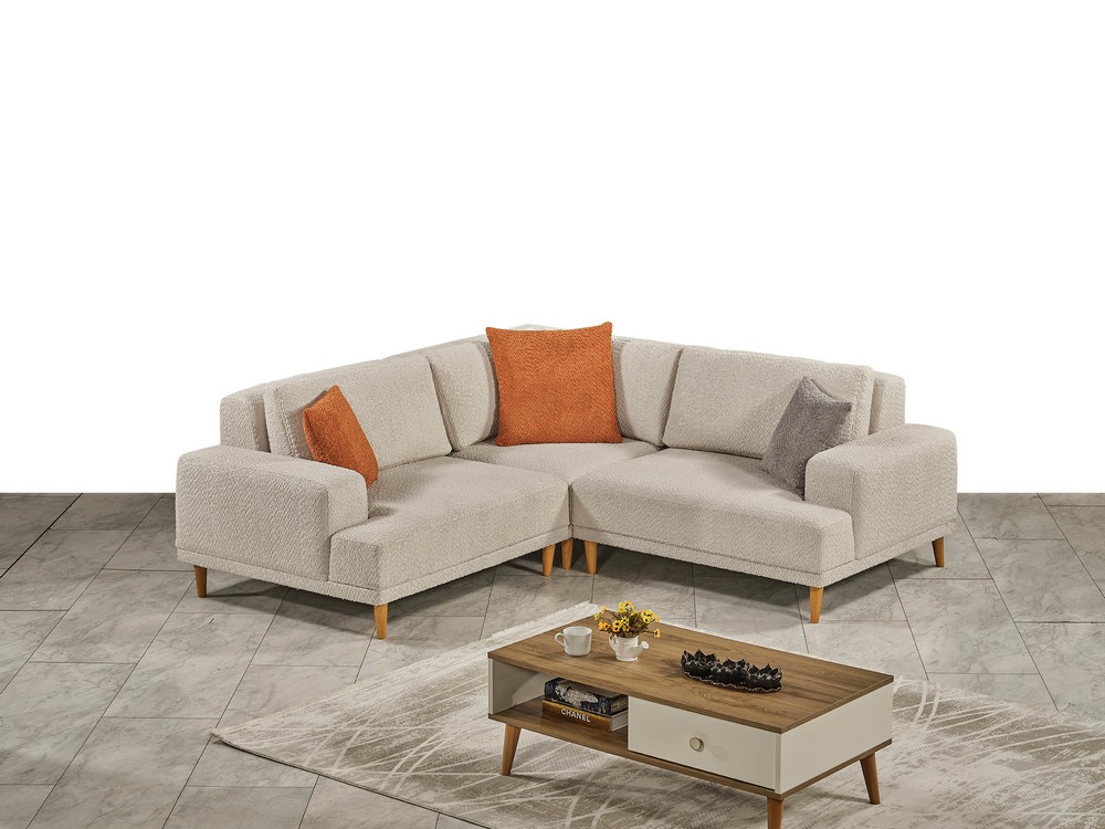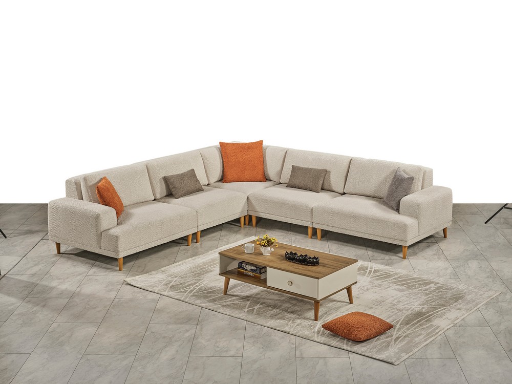 Sehpa detayı, yerden yüksek ve dayanıklı ahşap ayaklarla desteklenmiştir. Ortopedik sünger yapısı konforu artırırken, farklı fonksiyonları sayesinde ürün büyüyüp küçülebilir. Kullanım alanına göre değişen farklı ebat seçenekleri sunar ve her mekâna uyum sağlar.