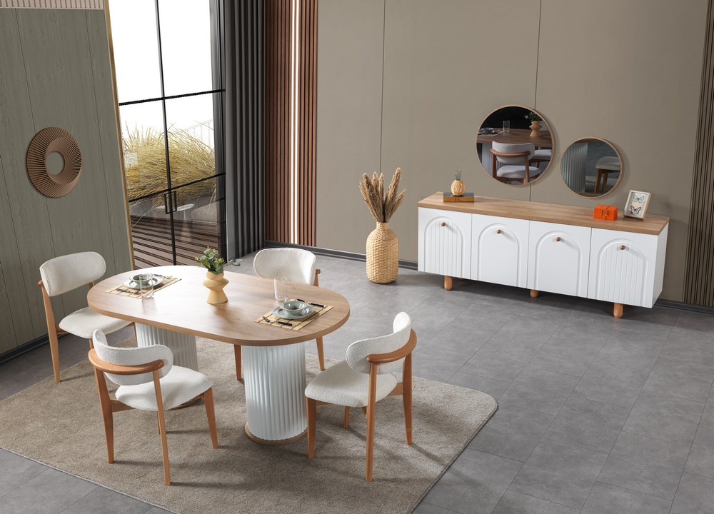 Yemek odası takımları Masa Takımı, Konsoldan oluşmaktadır. Ünite isteğe bağlıdır.