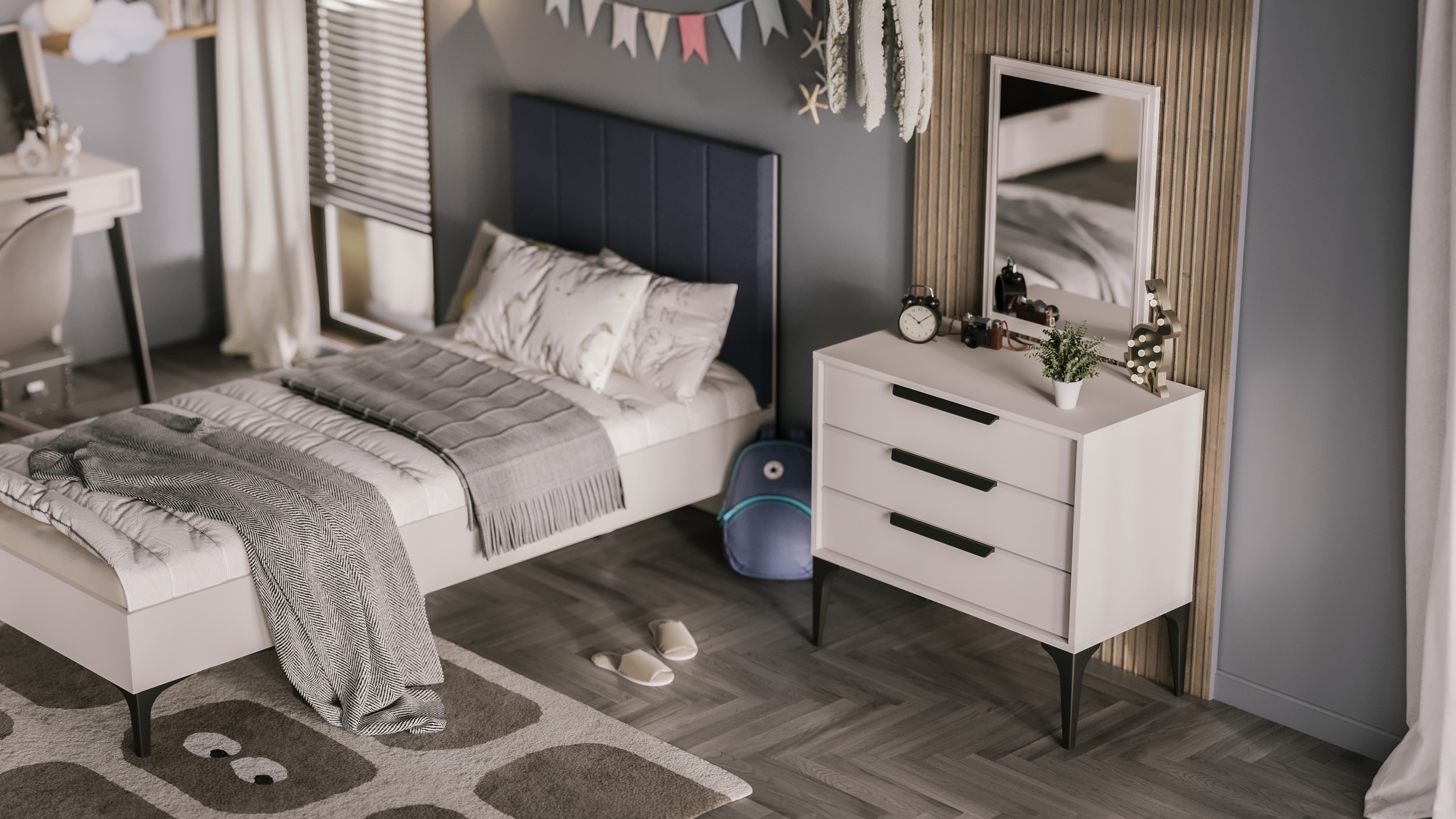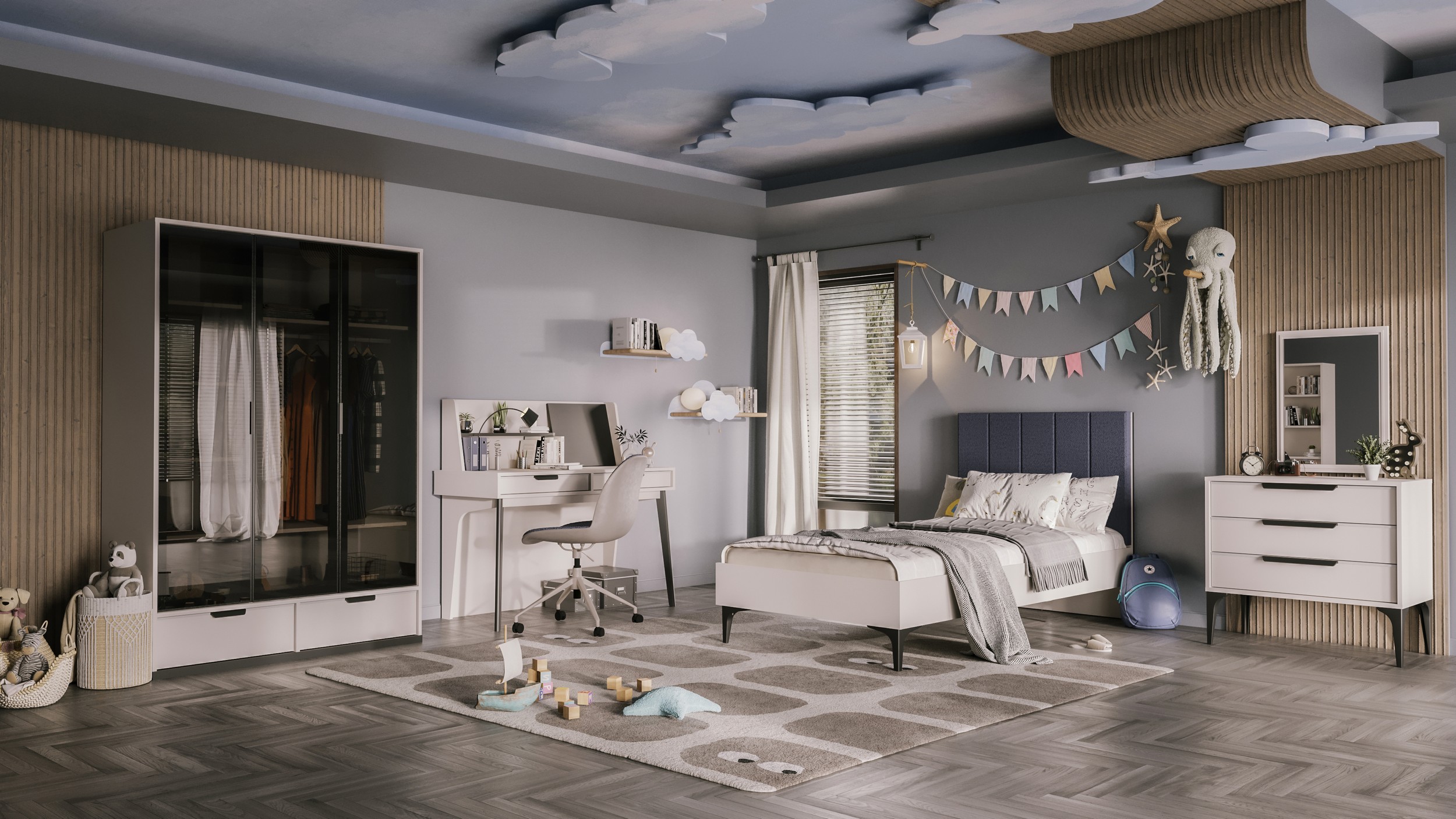 Dolap - Şifoniyer - Karyoladan-Çalışma masasından oluşmaktadır. Diğer parçalar opsiyoneldir.